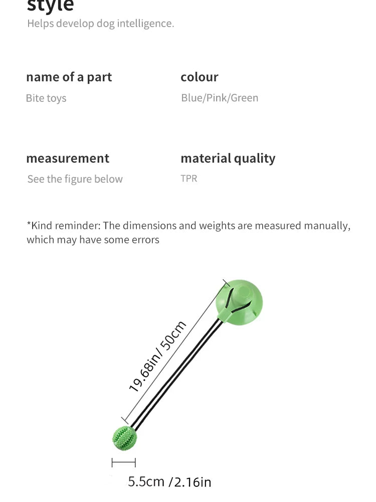 ¡Descubre la diversión definitiva para tu perro! Fabricado en caucho resistente, este juguete interactivo con ventosa está diseñado para satisfacer las necesidades de masticación y juego de tu mascota. Además de dispensar premios, emite divertidos sonidos que captan la atención de tu perro y despiertan su curiosidad. Ideal para todas las razas, es perfecto tanto para que juegue solo como para interactuar contigo.